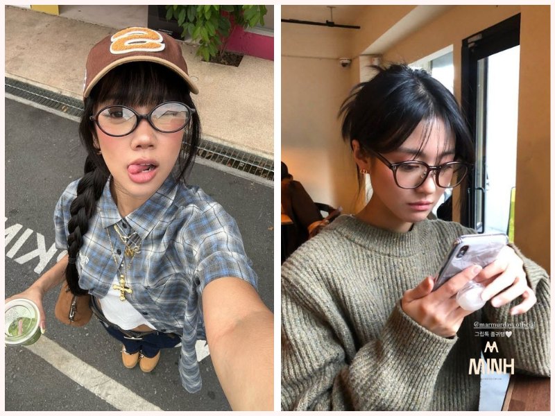 Nếu bạn thuộc team mặt vuông, hãy ưu tiên những mẫu kính có dáng tròn, oval hoặc mắt mèo. Những đường cong mềm mại này sẽ giúp gương mặt trở nên nhẹ nhàng, bớt góc cạnh, đồng thời khéo léo che đi nhược điểm mũi thấp. Gọng kính mỏng, nhẹ và có đệm mũi là lựa chọn “chuẩn bài” dành cho bạn.